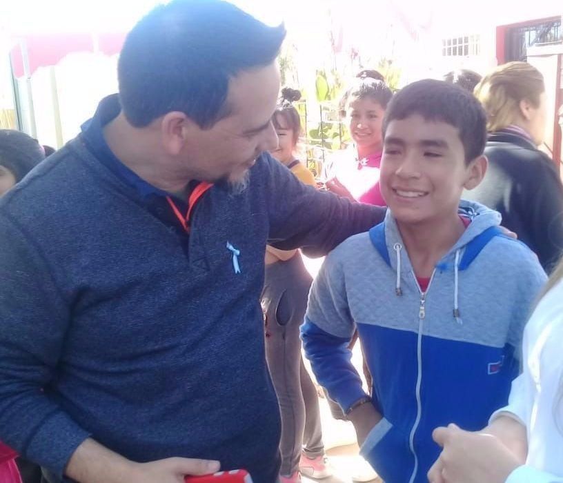 Leonardo Nicanor Quinteros fue sorprendido por alumnos y profesores del Instituto de Formación Docente de San Luis, quienes llegaron a Pocito para entregarle al pequeño que fundó una escuelita en el fondo de su casa, con el fin de ayudar a sus vecinos.