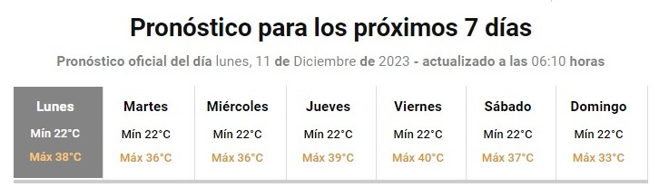 El Servicio Meteorológico Nacional también, en su pronóstico extendido, señala que este lunes, el jueves y viernes serán los días de mayor calor.