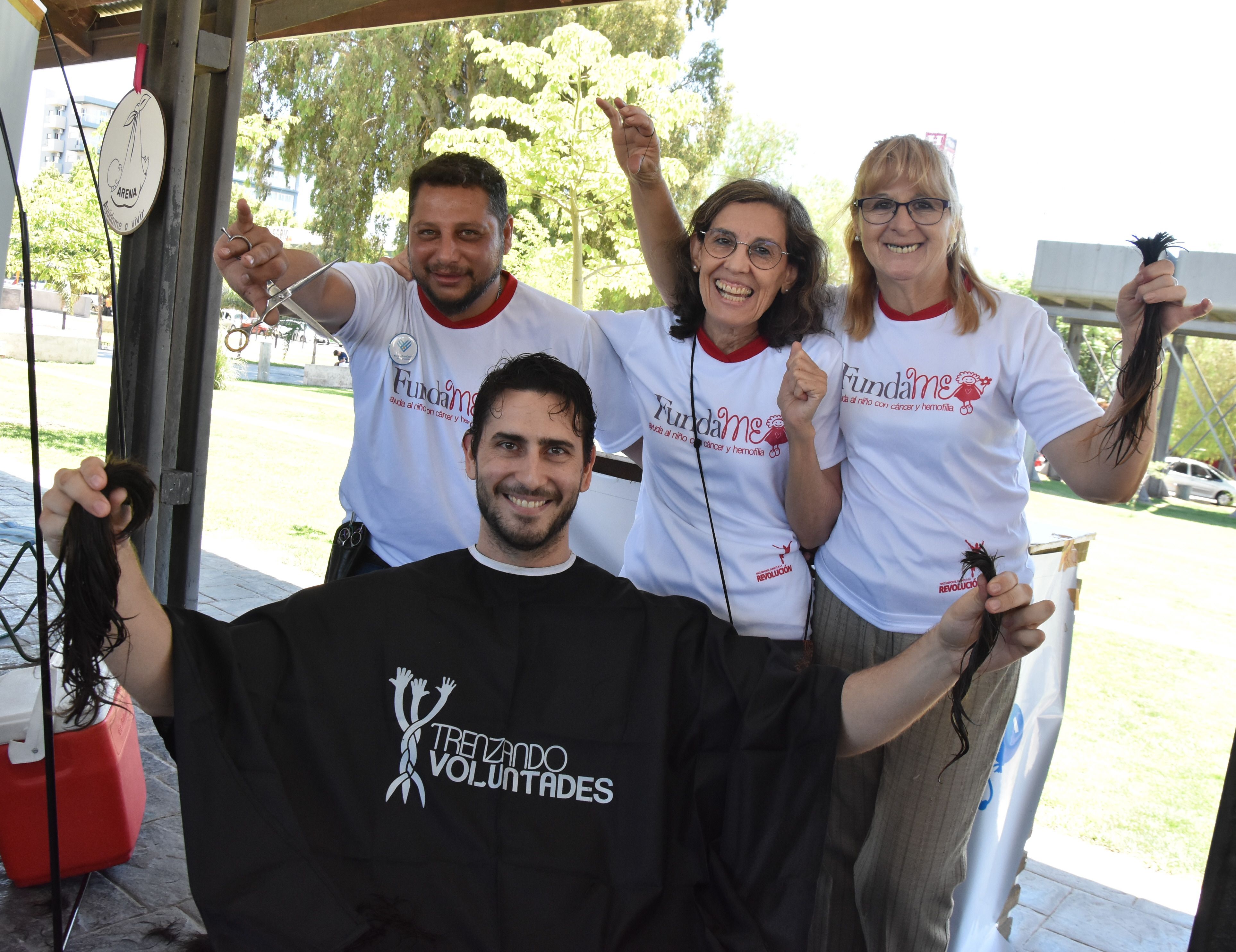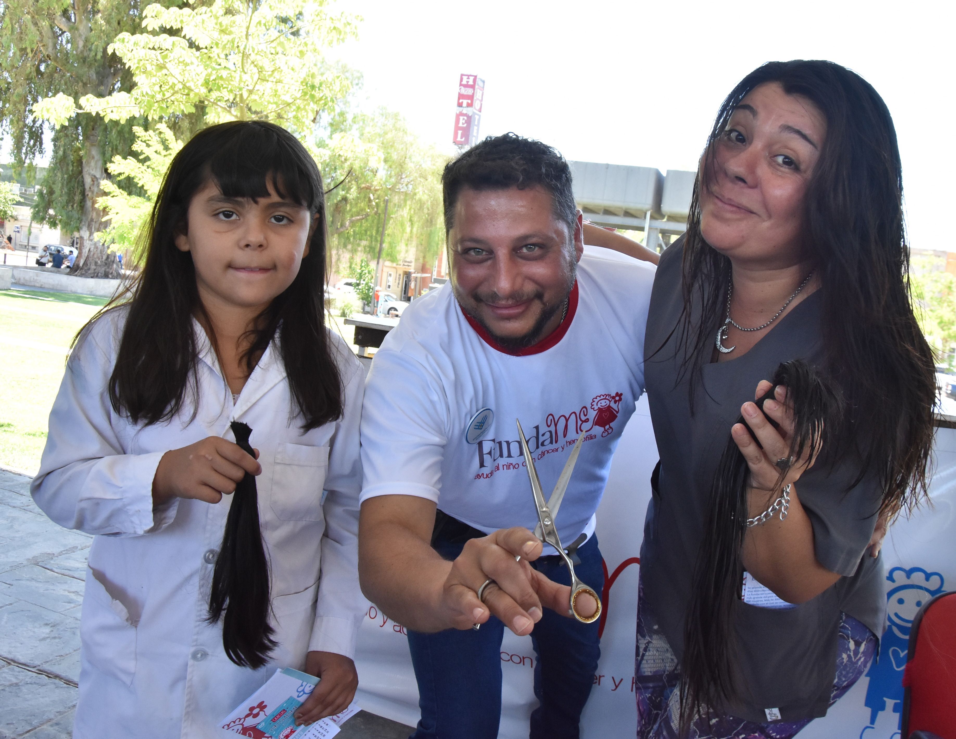 Uno de los andenes de la Plaza del Bicentenario fue el escenario donde dos peluqueros cortaron el cabello a decenas de personas. Mujeres, niños y hasta hombres se acercaron a donar pelo para que Fundame, la fundación que ayuda a chicos con cáncer o hemofilia, pueda hacer nuevas pelucas oncológicas. La solidaridad fue tanta que hasta familias completas hicieron sus donaciones. Esta campaña solidaria, que también tuvo como protagonista a otras fundaciones y ONG de San Juan, se realizó durante la jornada de ayer y fue en el marco de Un Día para Dar, una campaña que se realiza todos los 3 de diciembre en el mundo, para incentivar la solidaridad.