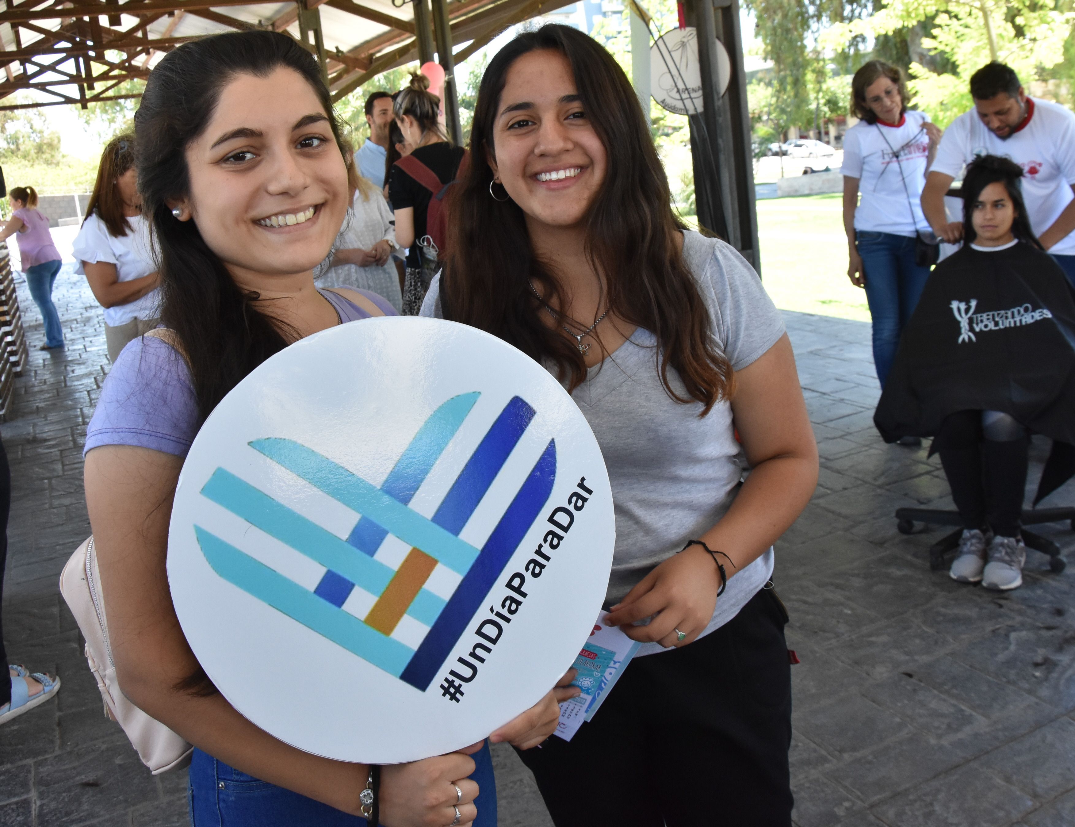 Milagros Sefair (a la izquierda) fue una de las primeras en cortarse el cabello. La joven comentó que su mamá le contó de la campaña y que no dudó en colaborar.