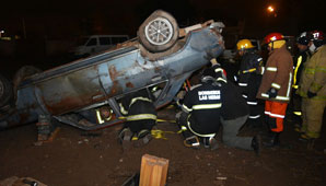 San Juan.- Bomberos Voluntarios, de la Policía y miembros del Grupo GERAS, rompieron autos viejos y hasta sacaron a personas encerradas a propósito en autos para aprender sobre rescate vehicular, en una serie de clases ofrecidas por instructores de Córdoba y San Luis.
