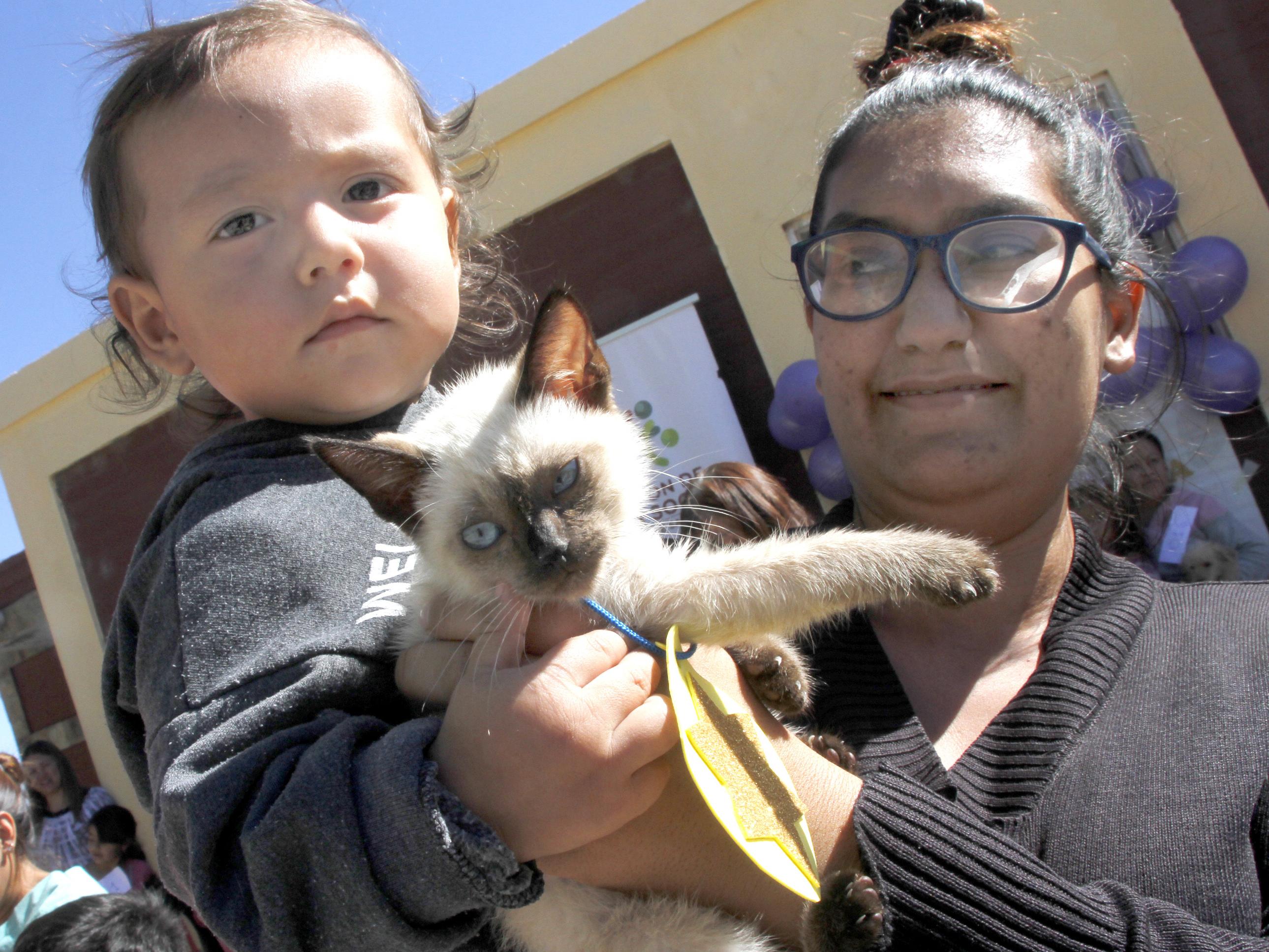 Vive a pocos metros del Complejo Ceferino Namuncurá. Llegó junto a Yohana y Adhir Álvarez y fue una de las mascotas más acariciadas. Él es Barula, un gatito que desfiló y fue ovacionado. "Es muy tímido y cariñoso. A los niños les encanta jugar con él", dijo Carla.
