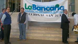 San Juan, 28 de abril.- Con un alto acatamiento en la provincia se concretó el paro nacional convocado, para toda la jornada de hoy, por la Asociación Bancaria en demanda de mejores salarios y el cumplimiento de las normas laborales por parte de los bancos.