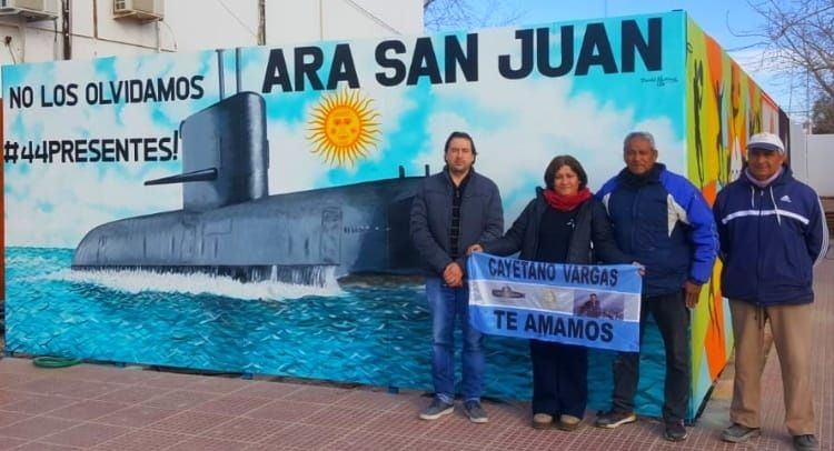 Una de esas visitas fue la de Carina Funes, esposa del marino sanjuanino fallecido en el submarino, que viajó desde Buenos Aires para apreciar el mural en homenaje a su marido y demás tripulantes. Fue acompañada con otros familiares de Cayetano, quienes se emocionaron cuando Daniel Martínez les contó lo que quiso plasmar y transmitir con esta obra.