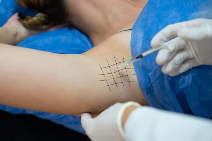 -Toxina botulínica: el tratamiento produce el bloqueo local del nervio que provoca la transpiración. Su aplicación tiene un efecto temporal (6 a 9 meses) y es de las mejores opciones para la hiperhidrosis axilar.