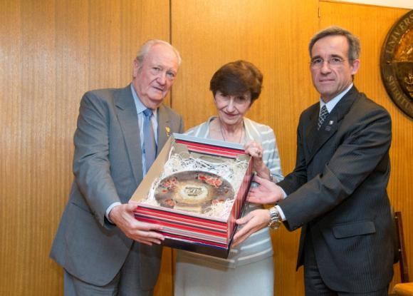 Luego de la disertación de la exrectora, Osvaldo Caballero, rector de la Universidad del Aconcagua, le entregó un presente a la exrectora, en reconocimiento a su trayectoria y su labor ejecutiva al frente de la universidad privada local.