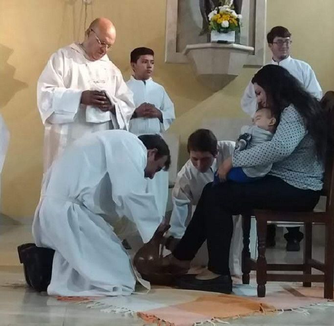 En el marco de la Semana Santa, el padre Rodrigo Robles, de la parroquia de Santa Bárbara de Pocito, realizó el tradicional lavado de pies.