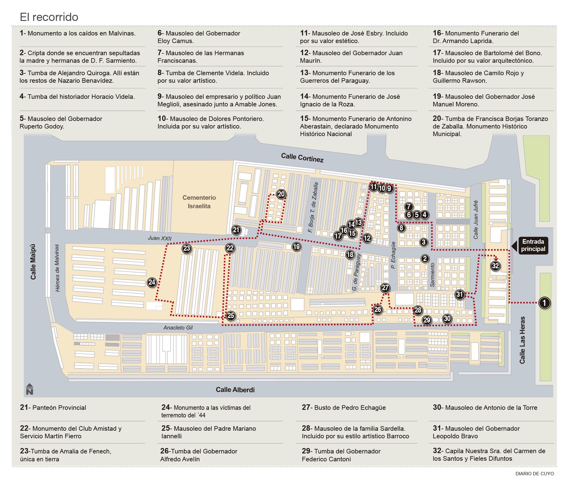 Hoy se conmemora el Día de los Fieles Difuntos, popularmente conocido como el Día de los Muertos. En este contexto, la Municipalidad de la Capital realizará una celebración religiosa en el cementerio a partir de las 8,30 y abrirá de manera extraordinaria el circuito de necroturismo. Este tour por el cementerio municipal se realiza de manera habitual los fines de semana y feriados y es gratuito. Hoy, en él se podrá conocer 32 tumbas, valoradas por su interés histórico, y otras por su belleza artística o arquitectónica.