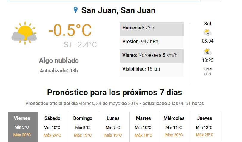 La sensación térmica fue de 2.4 grados bajo cero, con cielo algo nublado y una leve brisa del sector Noreste y obligó a los sanjuaninos a sacar más abrigo del previsto