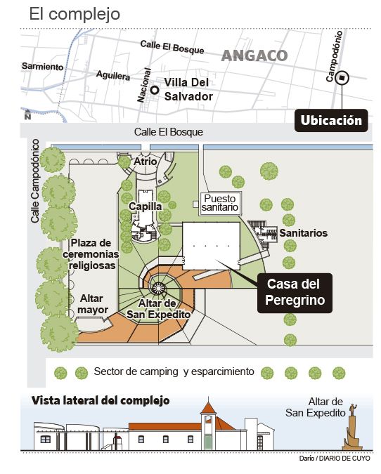 A partir de hoy, Angaco pone en marcha un nuevo servicio orientado a continuar con el fomento del turismo religioso en el departamento. Es la Casa del Peregrino que abre sus puertas para que todos los feligreses puedan usar de manera gratuita. Se encuentra en el predio donde está el santuario de San Expedito, en el distrito de El Bosque, y se suma a otras obras que se inauguraron en el lugar en los últimos seis años para brindar mayor comodidad a los visitantes. Habrá misa para celebrar.