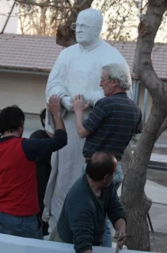 Fueron algunos de los padres de los primeros alumnos que tuvo la escuela y que hoy se encargan de la Catequesis Familiar, quienes idearon este homenaje. Dora Luna, directora del nivel primario, dijo que se pusieron en contacto con el escultor Ricardo Bustos que decidió tomar este trabajo hace más de 6 meses. Luego, los papás comenzaron a hacer actividades benéficas para juntar dinero. Hicieron rifas, peñas y hasta algunos festivales para poder terminar la obra.