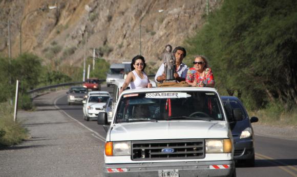 Tras media hora de marcha, la caravana ingresó a Zonda y dio una vuelta por la villa cabecera. Allí la gente no sólo se acercó a tocar y besar a Brochero, sino que también le regaló flores para demostrarle su devoción.