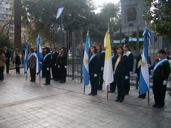 San Juan, 8 de julio.- Pasadas las 11:30 de la mañana de hoy se celebró un acto anticipado por el aniversario 195º de la Independencia. Fue en plaza 25 de Mayo, bajo el monumento de Fray Justo Santa María de Oro.