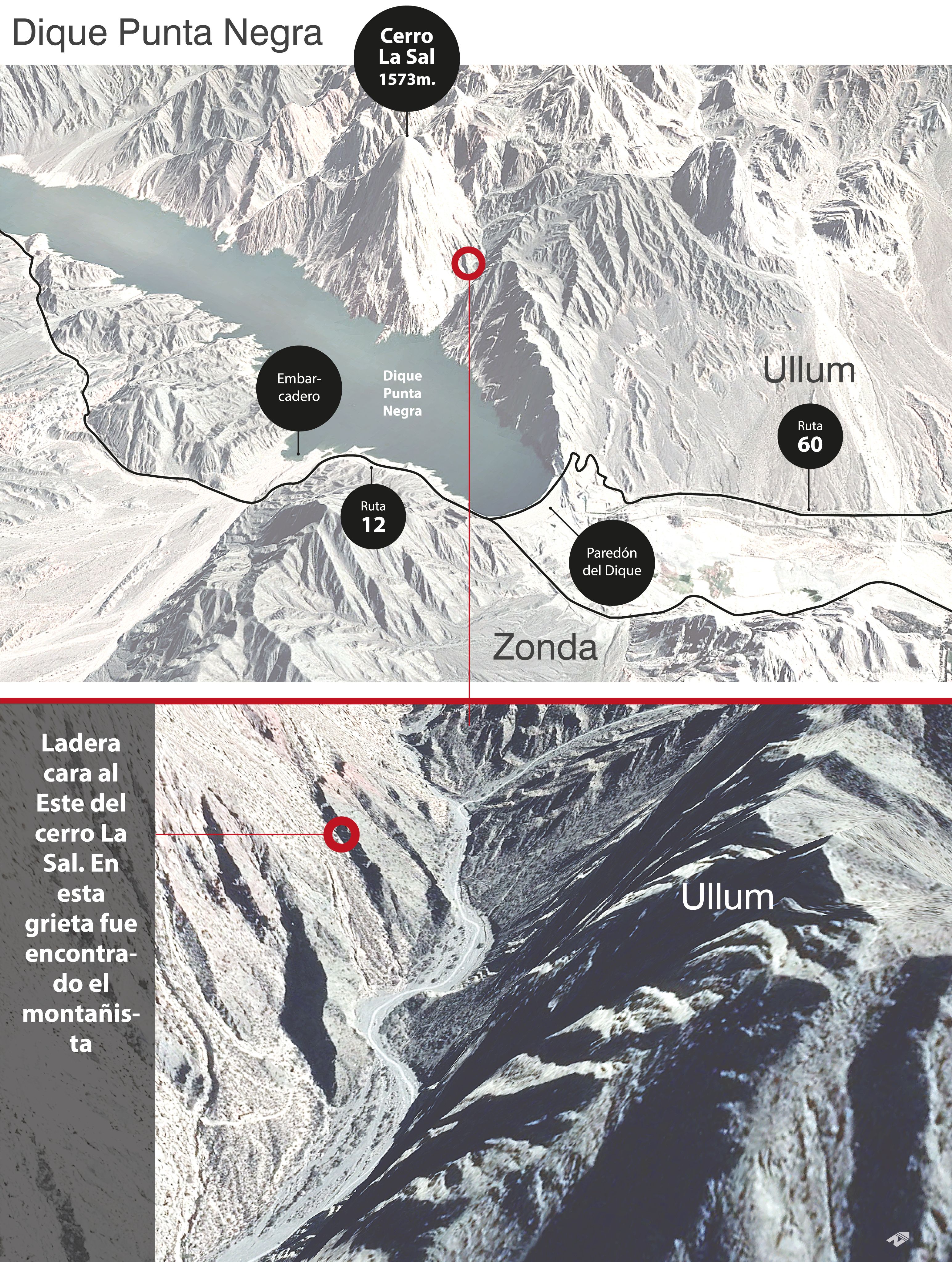 Luego de que fuera hallado sin vida el andinista Eduardo Rivas en el cerro La Sal, en Ullum, se conoció el lugar de la tragedia.