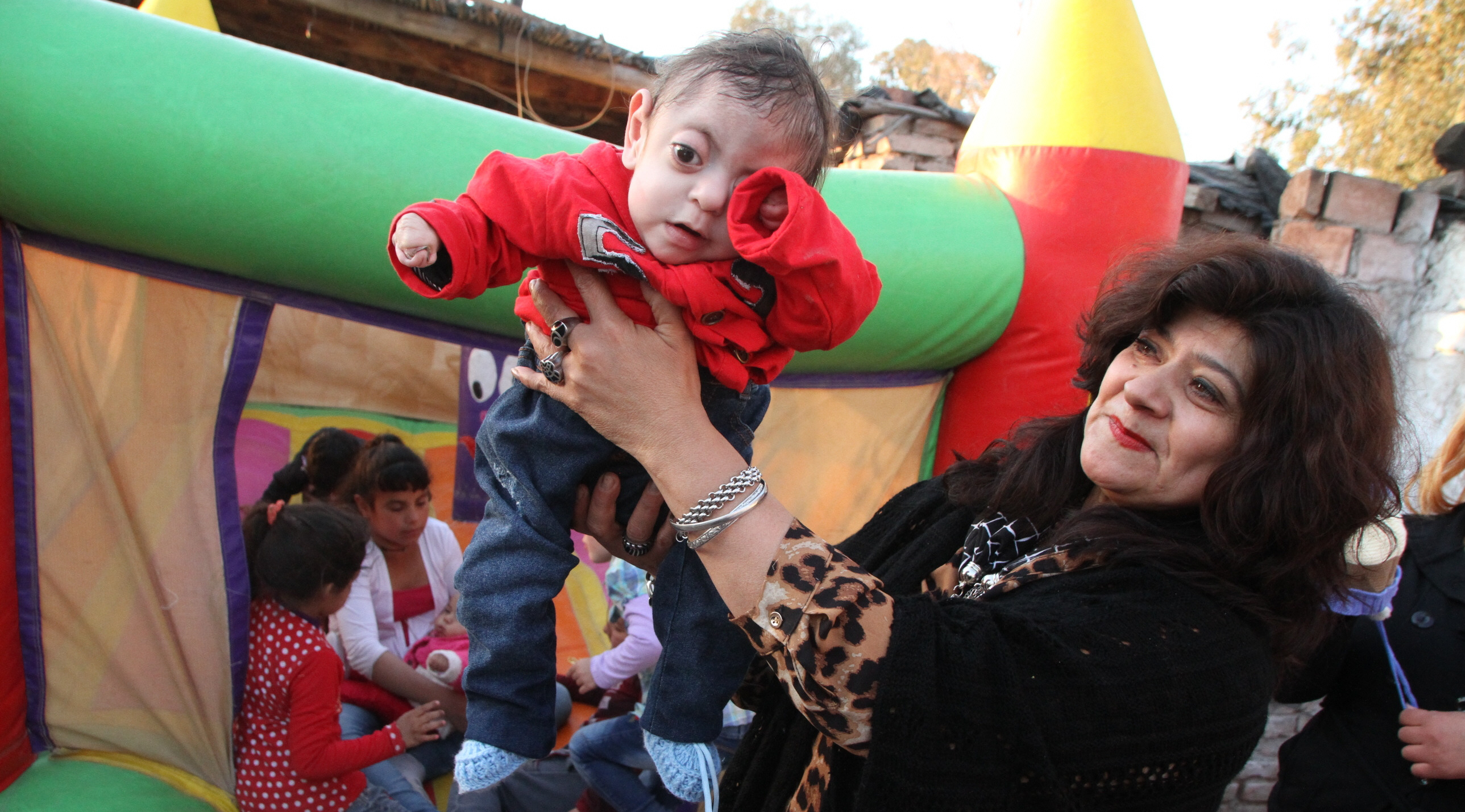 Ian nació con el síndrome. ‘Fue una noticia muy dura‘, dijo Brenda Barzola, la mamá del niño y contó que al principio les costó enfrentar esta enfermedad, pero con el paso del tiempo y gracias a la ayuda que recibieron de toda la comunidad lograron salir adelante. ‘Hoy crío a mi hijo de la misma manera que lo hice con mis hijas‘, dijo la mamá del nene que no camina y que tiene el tamaño de un bebé de 7 u 8 meses.