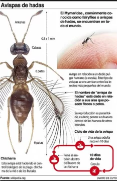 “Creemos que esta avispa apareció justamente por la superpoblación de chicharritas. Es un insecto muy pequeño -de alrededor de 3 mm- que prácticamente no se ve y no genera molestias a las personas”, detalló Pantano. Por este motivo, las autoridades decidieron que este año no se fumigue todo el departamento, porque de ese modo matarían también a la avispa, y esperar que la población de insectos se equilibre de modo natural.
