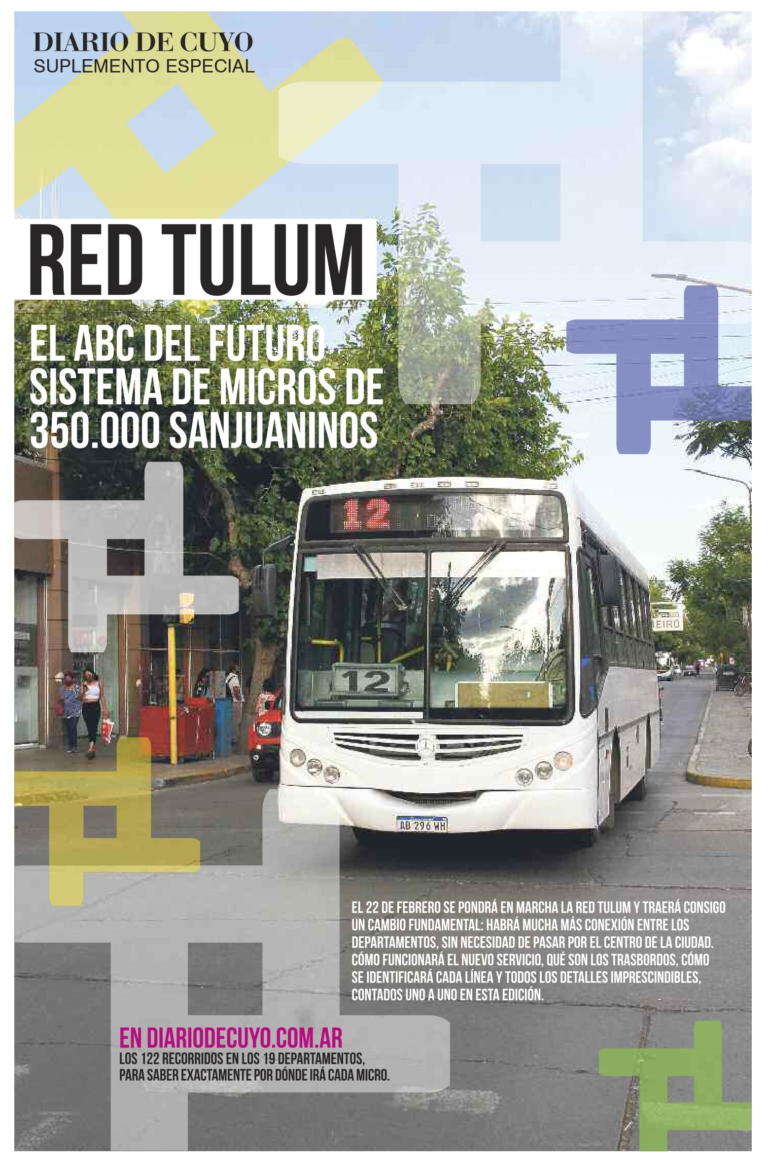 A menos de un mes de que se ponga en marcha en San Juan la Red Tulum, que es el nuevo sistema de transporte de pasajeros que introducirá cambios históricos, DIARIO DE CUYO presenta con su edición del domingo 31 de enero un suplemento especial con todo lo que el usuario de colectivos necesita saber.