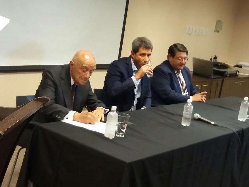 Este martes, el presidente de la Fundación Banco San Juan, Enrique Eskenazi, firmó un acta convenio con el gobernador Sergio Uñac y el ministro de Educación Felipe de los Ríos para que 33 directores de escuelas técnicas reciban capacitaciones que sirvan posteriormente para ser aplicadas en las instituciones educativas a las que pertenecen.