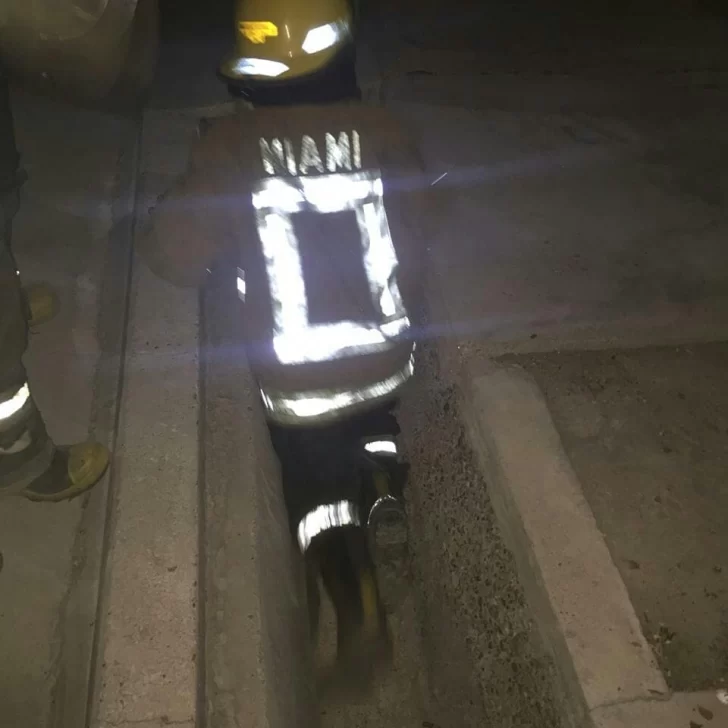 Durante la noche de ayer, Bomberos voluntarios de Caucete fueron alertados por vecinos del Barrio Justo P. Castro I, quienes escucharon el llanto de cachorros que se encontraban atrapados en el interior de una acequia muy estrecha.