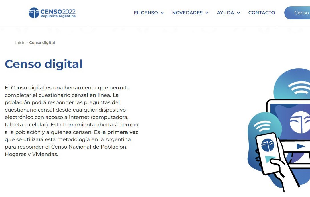 La web. Para conocer más detalles del censo, el Gobierno nacional habilitó una página web (www.censo.gob.ar), donde hay información.
