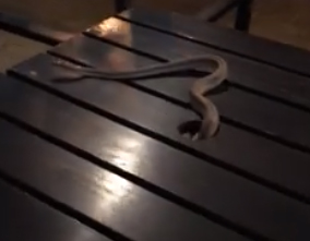 Una joven sanjuanina compartió en las redes sociales su sorpresa y espanto después de haber encontrado en un bar de Capital una víbora de gran tamaño sobre la mesa.