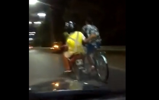 Un lector registró el momento en que dos personas que viajaban en moto empujaban a un ciclista.