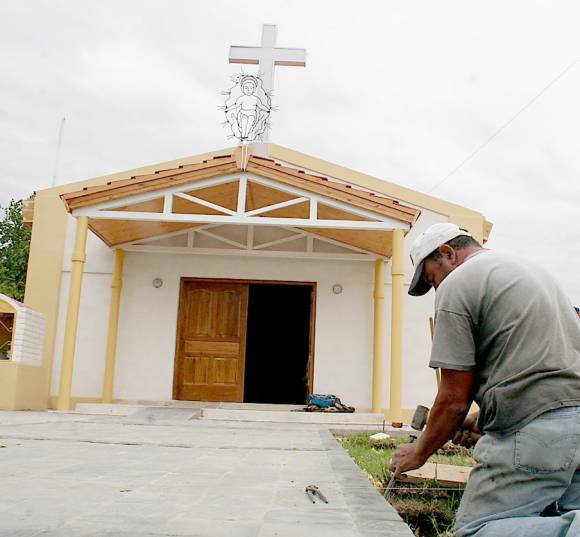 El anteaño pasado, los vecinos comenzaron por fin a construir el edificio en un terreno donado por una familia de la zona. Entre todos levantaron las paredes y pusieron un techo de cañas. "Nos costó mucho, fue un trabajo a pulmón", cuenta Estela. Pero llegó un momento en que la tarea comenzó a ponerse difícil, sobre todo por la falta de dinero. Los vecinos decidieron pedir ayuda y se comunicaron con el Obrador Central de la Dirección de Arquitectura. Juntos diseñaron y trabajaron en la capilla.