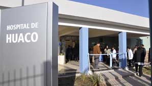 El hospital de Huaco tiene internación con un total de 10 camas (2 para niños, 4 para hombre y 4 para mujeres), sala de Rayos X y atención ambulatoria en las especiales de Pediatría, Ginecología, Odontología, Clínica Médica y Farmacia. Además cuenta con un grupo electrógeno propio para generar energía en caso de ser necesario.