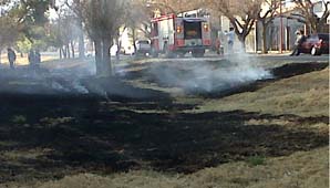 San Juan, 6 de Agosto.- Un importante incendio se produjo esta tarde en un terreno al costado de avenida Circunvalación, entre calle Nuche y 9 de Julio, en Capital. El siniestro, que fue controlado por Bomberos, produjo graves daños al parquizado de ese lugar.