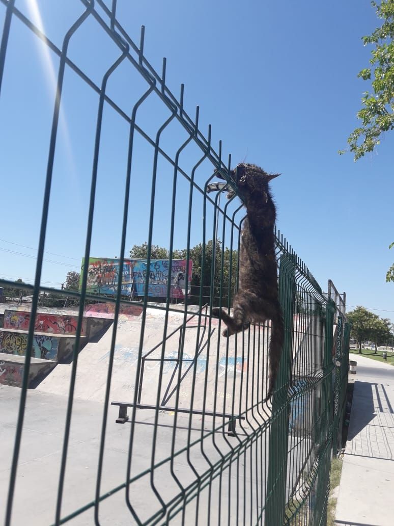 Indignación por la aparición de una gata clavada en las rejas del skate park de Capital