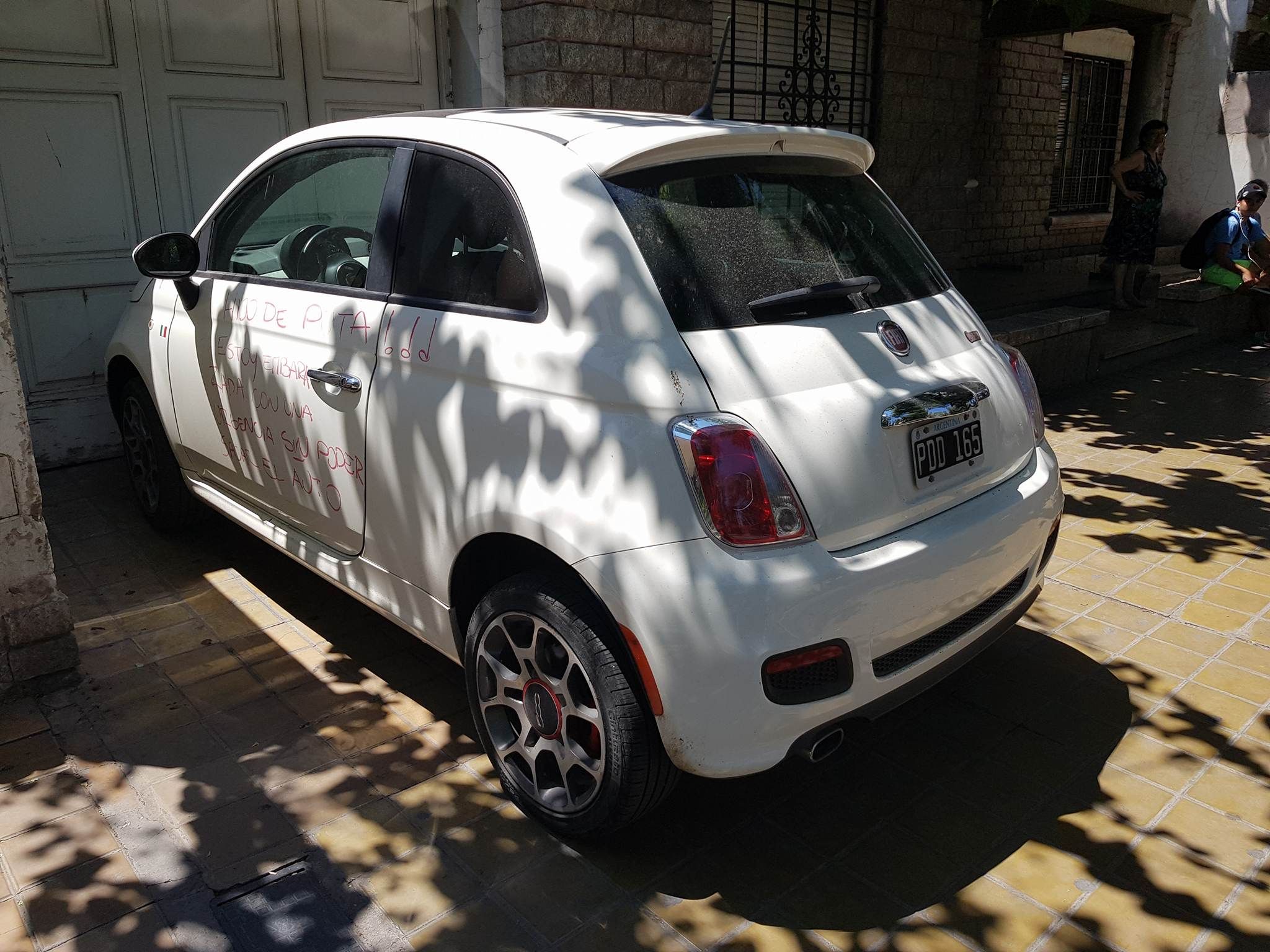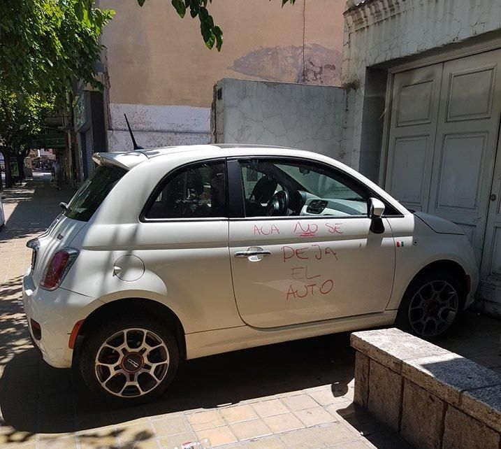 “Acá no se deja el auto”, escribió la mujer en una de las puertas con rojo, aparentemente usando un lápiz labial.