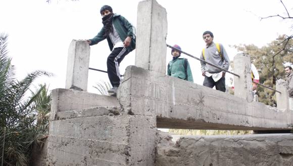 Todos los días es lo mismo. Además de caminar varias cuadras con una pesada mochila sobre la espalda, los chicos que viven en el barrio Marquesado y que van a la escuela Blas Parera, tienen que atravesar un puente sobre el canal Benavídez de un modo bastante poco común. De un lado, hay 8 escalones para subir al puente, pero para salir de él no hay nada. O sea, la única manera de bajar del puente es dando un salto de más de 1,50 metros. Esto se torna sumamente peligroso sobre todo para los más chicos.