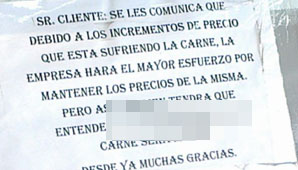 Un curioso cartel fue colocado en una carnicería de Rawson. El dueño del local promete no aumentar el precio de la carne, a cambio de...