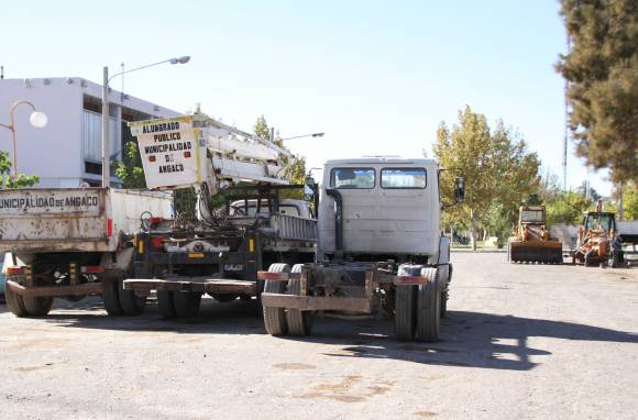 Camiones cisterna, grúas, camiones de residuos, retroexcavadoras y hasta un tractor estacionados en el medio de la calle, es el panorama que se observa a diario en la entrada de la Municipalidad de Angaco. Y a pesar de que esta arteria tiene el tránsito cortado, porque va a transformarse en peatonal, los vecinos se quejan y dicen que tienen que esquivarlos constantemente a la hora de hacer algún trámite municipal. José Castro, intendente de Angaco, explicó que no tienen obrador para estacionar los camiones.