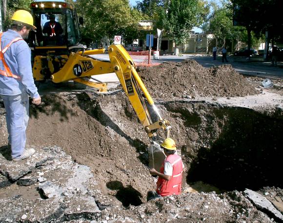 El pavimento se hundió el martes alrededor de las 17,30 y por casualidad no pasaba ningún vehículo por el lugar cuando esto sucedió. Se trata de un tramo de la mano Sur de la avenida, pasando calle Meglioli, en Rivadavia. A esa altura, la mano Norte también está cortada al tránsito porque se está renovando cañerías de agua potable y cloacas, para después ensanchar la arteria y pavimentar. Esto es lo mismo que se hizo en el sector colapsado y que fue habilitado hace poco más de dos semanas. Por este motivo los vehículos deben desviarse (ver infografía). El tramo dañado es de unos 70 metros, pero las máquinas tuvieron que levantar más pavimento porque está trizado y desgranado.
