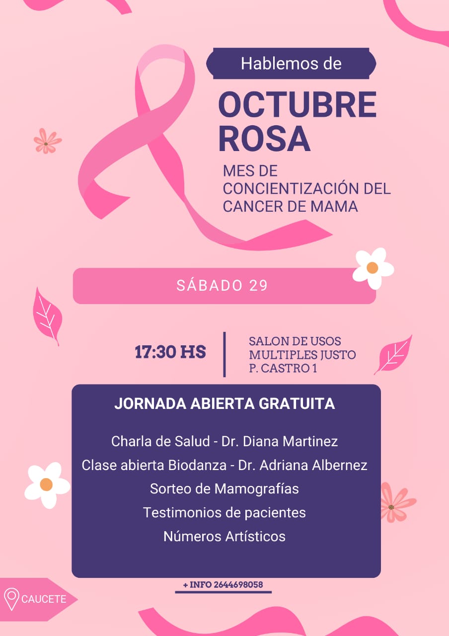 La Escuela de Danzas y Arte "Colores de Oriente" invita a las jornadas "Hablemos de Octubre Rosa", que se llevarán a cabo el sábado 29 y domingo 30 de este mes, con el objetivo de concientizar sobre el cáncer de mama.