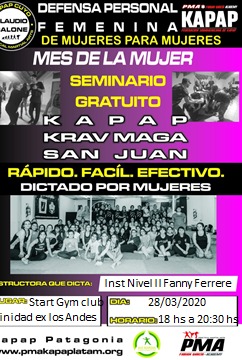 El 28 de marzo, un evento defensa personal tendrá lugar en el Club Trinidad (ex Los Andes), en Rawson. Será un seminario intensivo para mujeres y dictado sólo por congéneres. Entre ellas, quien encabezará el cursado, una instructora internacional nivel dos de Kapap: Fanny Ferrere.