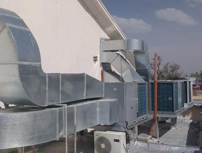 Impacto. La tubería externa de los aires acondicionados también fue dañada en algunos sectores luego del golpe de la chapa que voló el viento.
