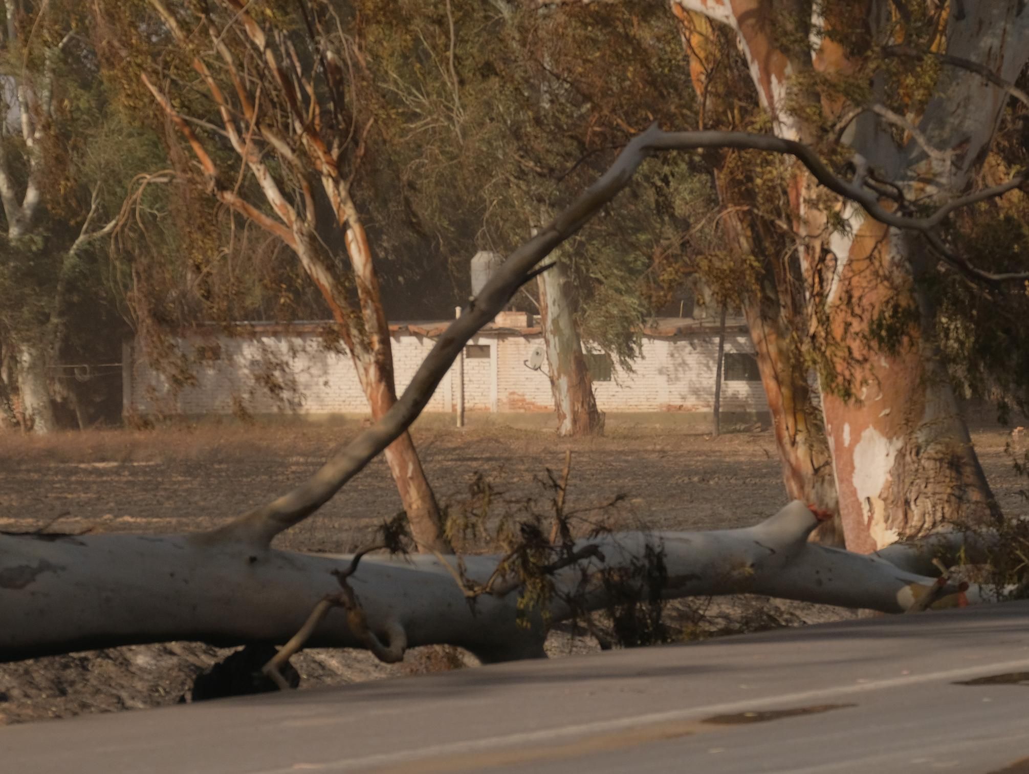 Típico. Fue recurrente la caída de cables y árboles, como este en Caucete.