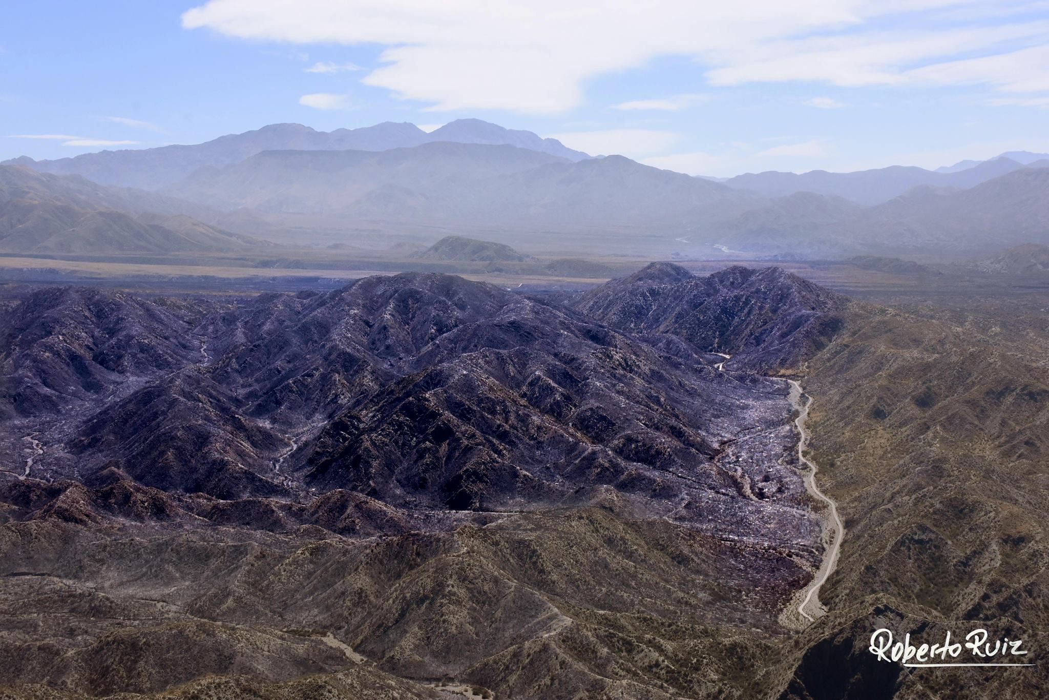 Una semana después de que un incendio consumiera miles de hectáreas en Jáchal, las autoridades realizaron un vuelo de reconocimiento por la zona afectada del que también participó Roberto Ruiz.