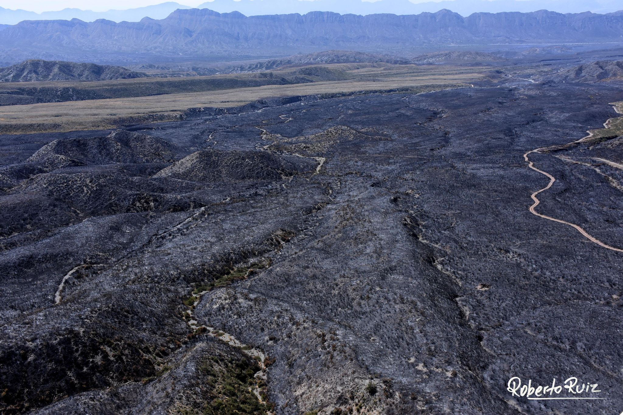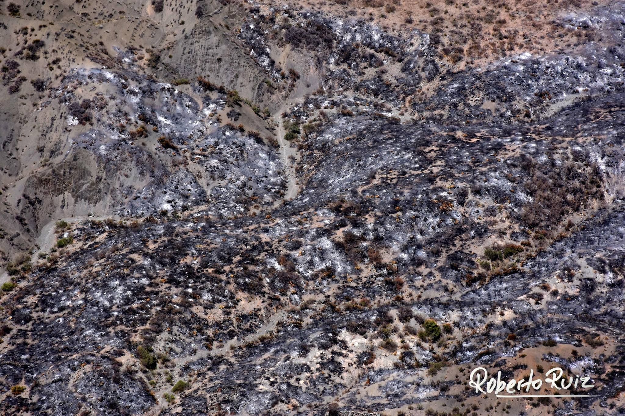 El fotógrafo del departamento compartió en sus redes imágenes que plasman la desolación tras el paso de las llamas. “La recuperación de esa vegetación y la fauna que habita allí demorara muchos años”, lamentó.