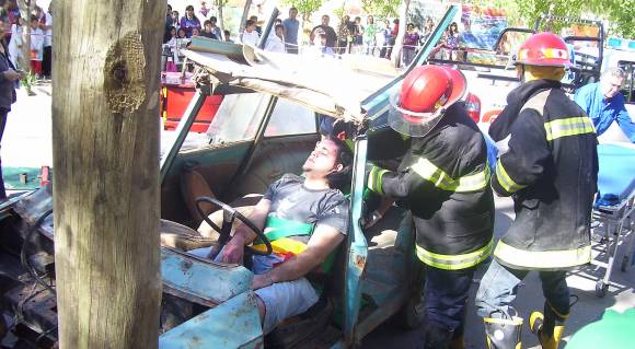 También el grupo especial de rescate de Gendarmería Nacional participó activamente en el operativo de emergencia con perros adiestrados para casos de siniestros graves. Simultáneamente a lo que ocurría en el centro jachallero, en la Escuela Provincia de La Pampa se produjo, como consecuencia del supuesto terremoto, un principio de incendio que obligó a la evacuación de todos los alumnos hacia el exterior del establecimiento. Afuera, los integrantes del Cuartel de Bomberos trabajaban en el rescate de un cadáver del interior de un Ami 8 que acababa de chocar. Todo, claro, como parte del simulacro.