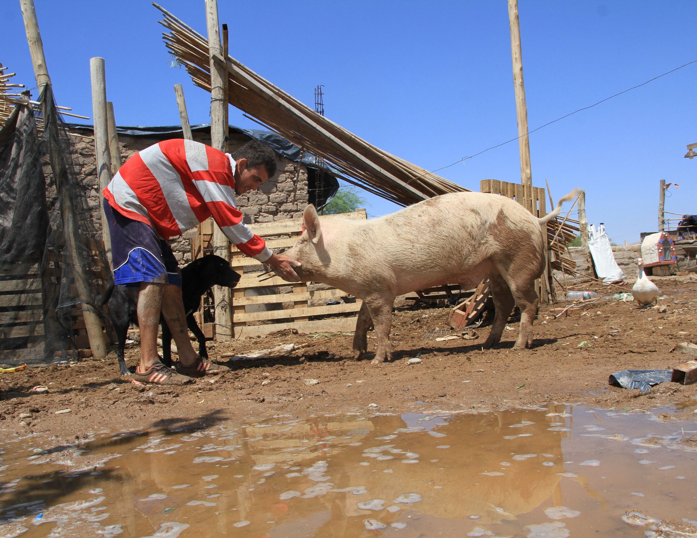 Alejandro Celán ayer trató de contener a sus animales. Es que debido al viento, la pileta de su vecino se voló y cayó sobre los corrales. "Algunos pollos y patos se me murieron y ahora no tengo dónde meter el chancho", dijo.
