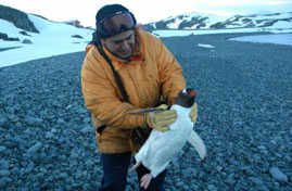 Su primera experiencia como profesional fue a bordo del ARA Gurruchaga y todavía recuerda una de sus primeras vistas: pingüinos y témpanos, que ahora forman parte de su paisaje habitual.