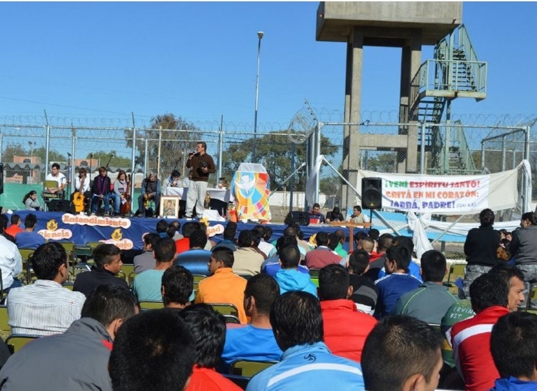 Unos 300 internos, de ambos sexos, participaron de la jornada que se llevó a cabo en el patio del Sector 4, con la presencia de las autoridades del Penal y del personal de seguridad. La misma se desarrolló de 14 a 17,30 e incluyó cánticos, predicaciones, testimonios y la celebración de la Eucaristía, pidiendo la gracia de recibir el Espíritu Santo.
