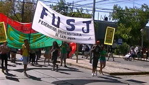Al menos 200 alumnos universitarios y de distintas escuelas de la provincia se concentraron en la Casa de Sarmiento y marcharon por primera vez en el año para pedirle a las autoridades que no suban el precio del boleto escolar, que se unifique la tarifa para aquellos jóvenes que viven en departamentos alejados y que se amplíe el horario nocturno del recorrido de los colectivos.