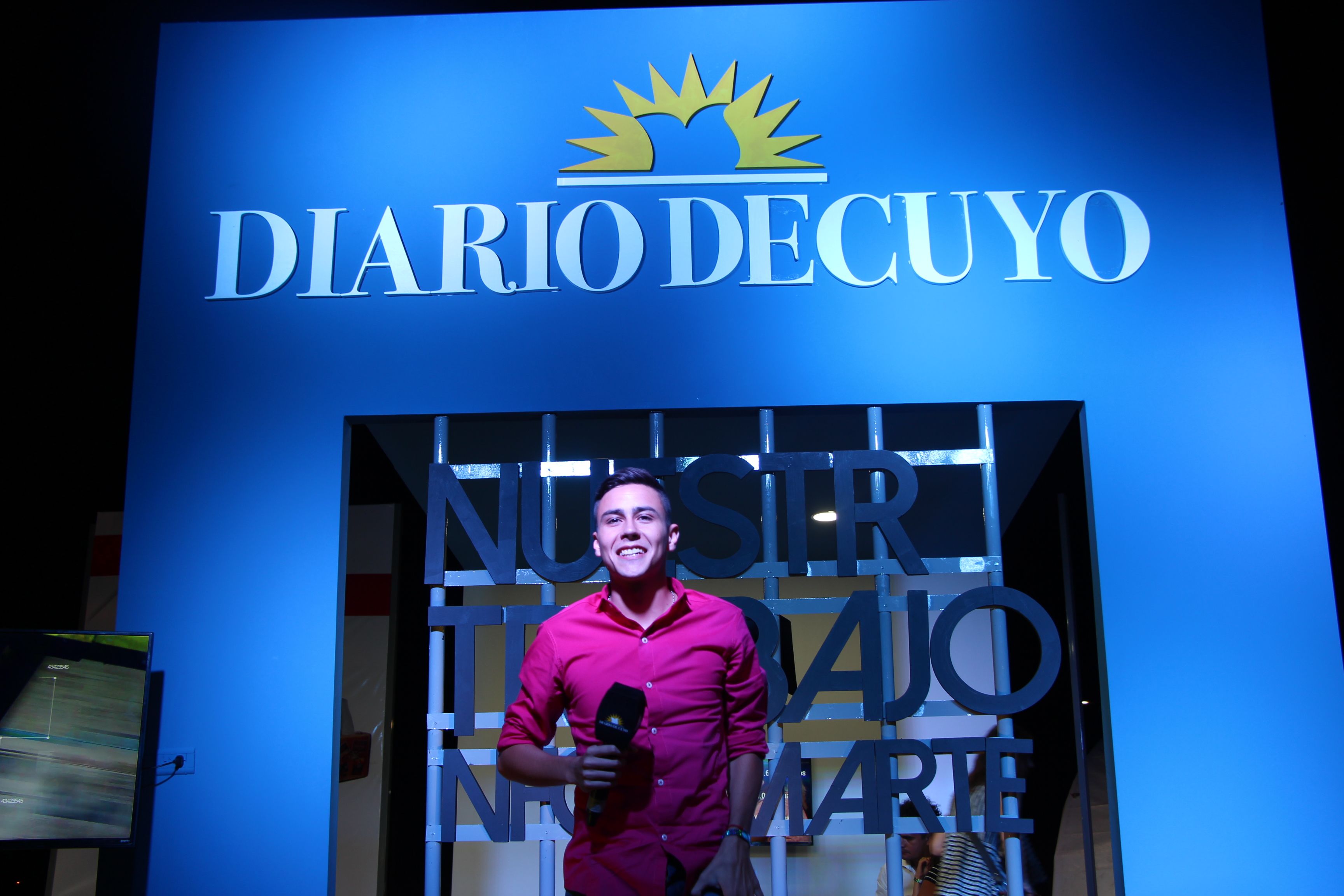Juan Cruz Rufino canta en el stand de Diario de Cuyo.