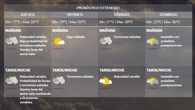 En cuanto a los próximos días, para el viernes se prevé una máxima de 35 grados, para el sábado se espera 38 grados de máxima y para el domingo, 36.