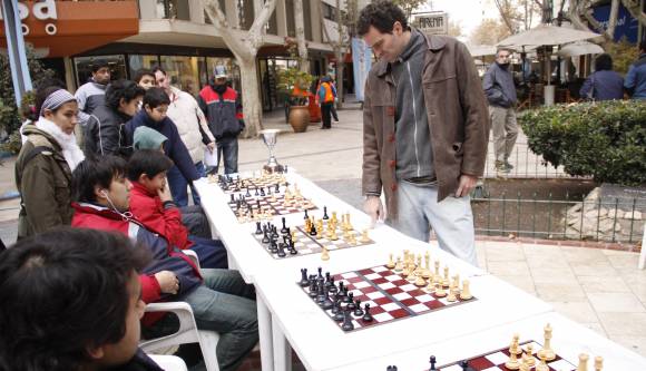 La iniciativa de hacer simultáneas públicas, que no se organizaban por lo menos desde hace cinco años, nació del área de Deportes de la Municipalidad de la Capital (que tiene una escuela gratuita de ajedrez en la Estación San Martín) para difundir la actividad. Y Juan de Cara, quien lidera el ranking sanjuanino, se midió con alumnos y transeúntes que pasaban, quienes tenían a disposición una copa si lo derrotaban. Sin embargo, tras cientos de movimientos y 30 partidas, uno a uno los rivales se fueron levantando de sus sillas, algunos sonriendo y admirando la capacidad del contendiente, y otros con gusto a fósforo y averiguando con los organizadores para ver si podían tener revancha, ahí mismo.