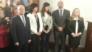 San Juan.- Durante la mañana de hoy, juraron y tomaron posesión de sus cargos los nuevos Magistrados y miebro del Ministerio Público Graciela del Pie (jueza de la Cámara Penal y Correccional de la sala III), Martín Heredia Zaldo (juez de Primera Instancia, IV Juzgado de Instrucción), Roxana Mariela Espín (jueza de Paz de Calingasta), Daniela del Valle Bustos Laspina (jueza de Paz de Rawson) y Daniel Mario Galvani (fiscald e Primera Instancia, fiscalía de Instrucción Nº 4)